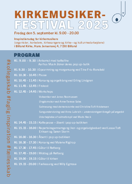 Dagen er skabt til organister, korledere, kirkesangere samt kirke- og kulturmedarbejdere, der ønsker faglig fordybelse, kollegialt fællesskab og ny musikalsk inspiration.